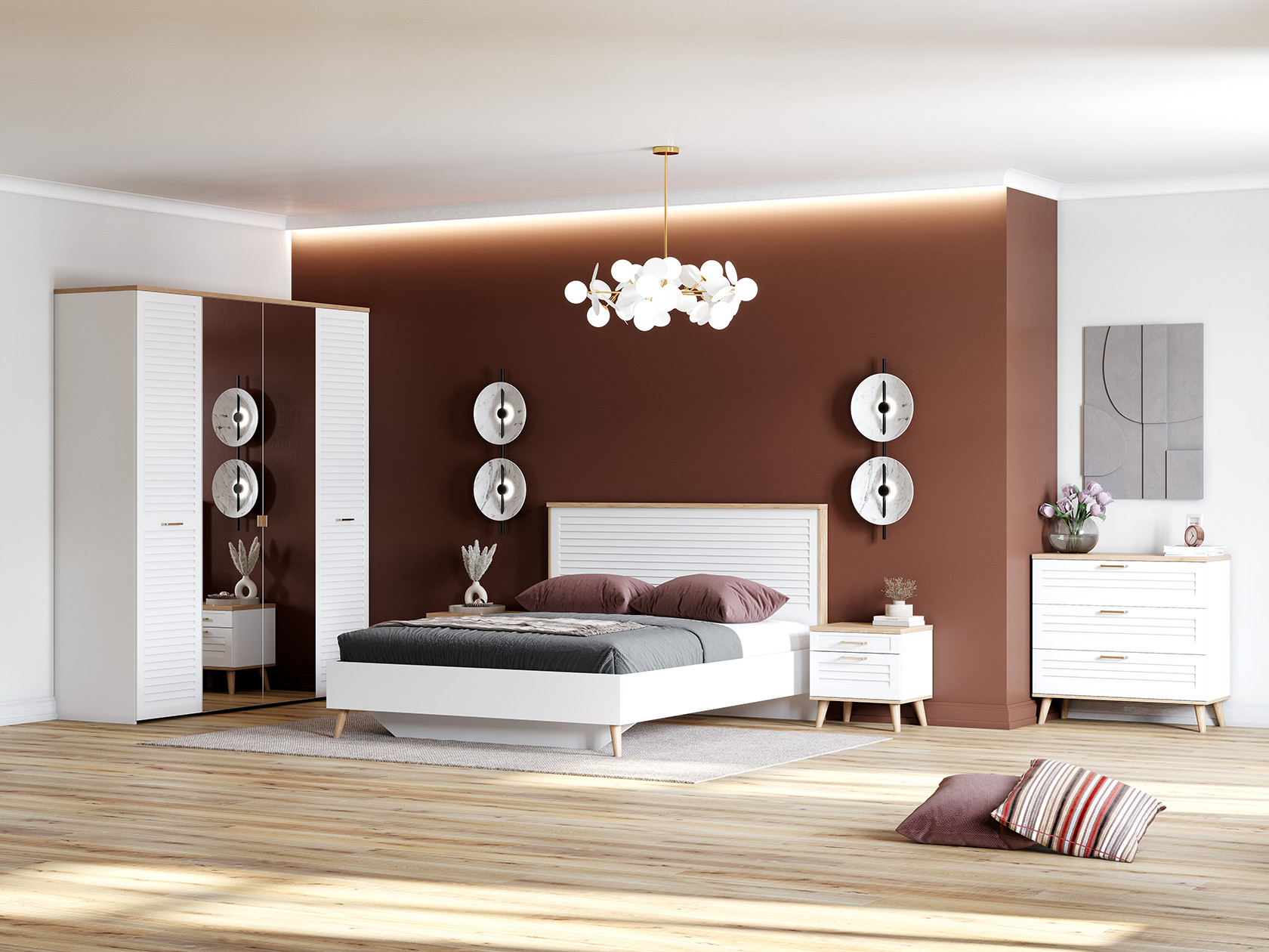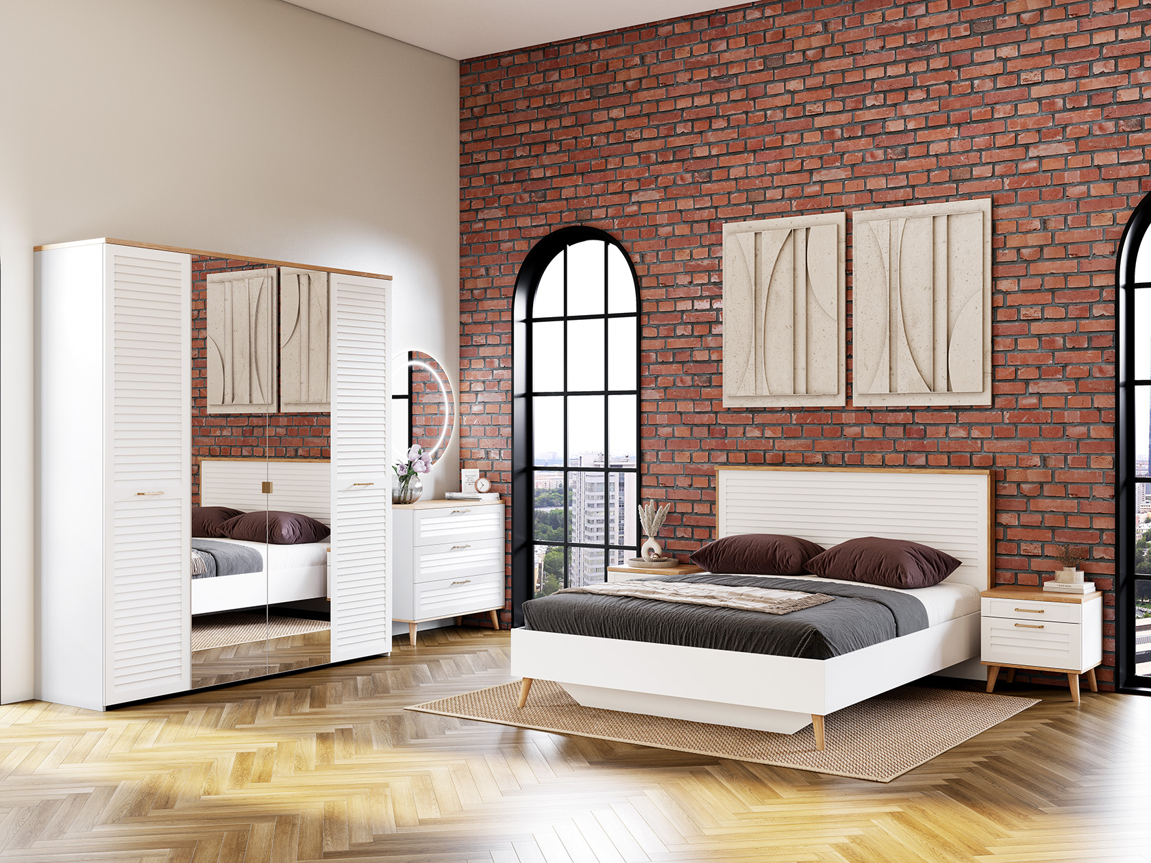 Выдвижные ящики с лаконичной фрезеровкой открываются легким нажатием. Внутри можно держать зарядку от смартфона, крем для рук, очки и другие личные вещи, которые часто требуются перед сном.