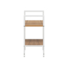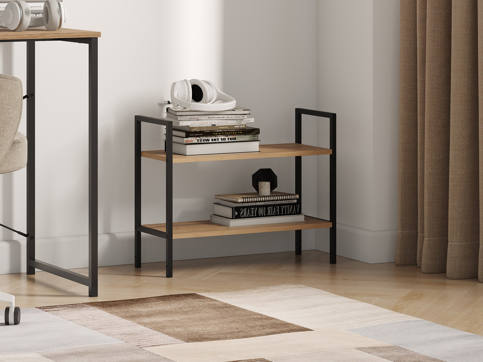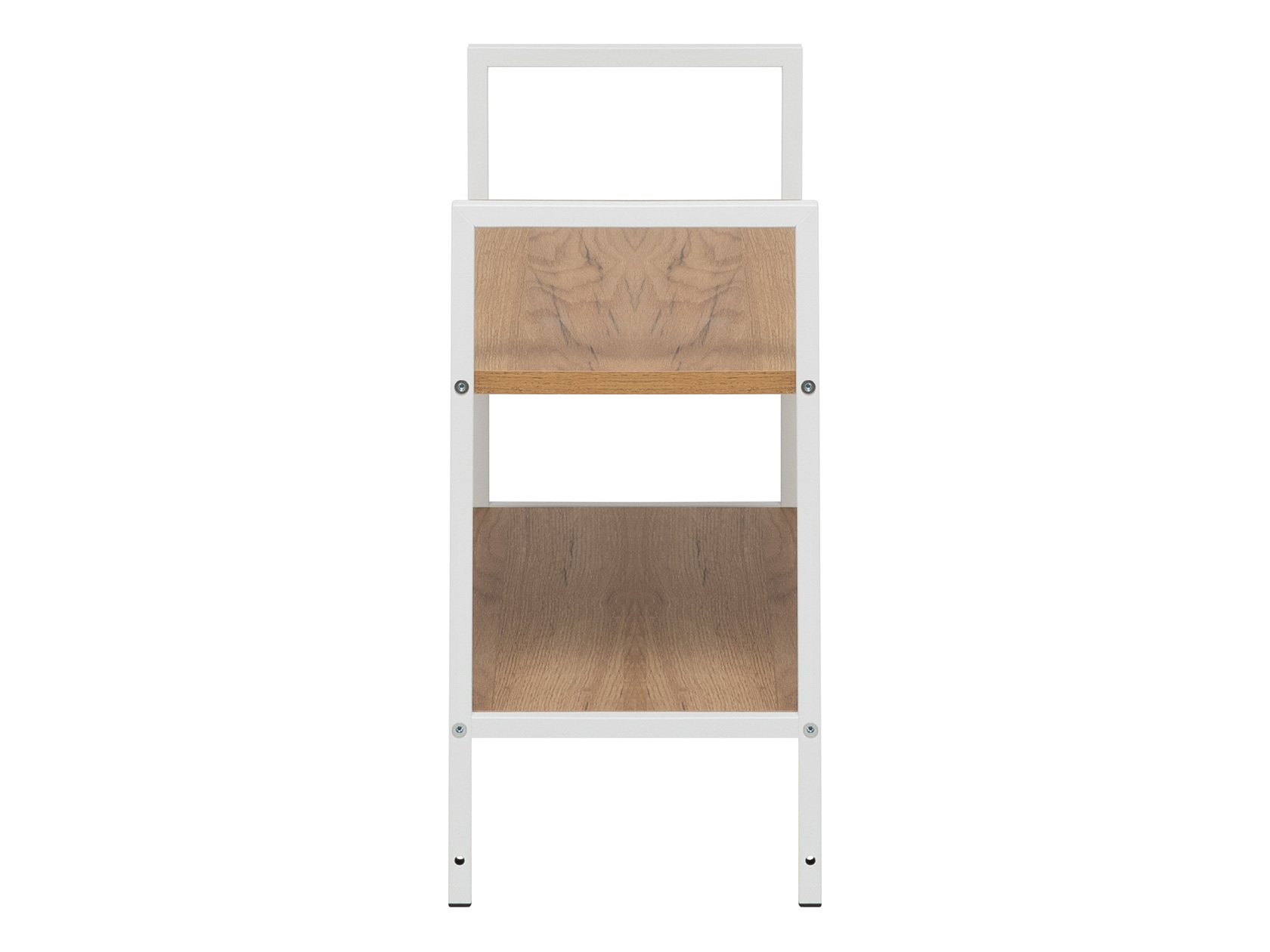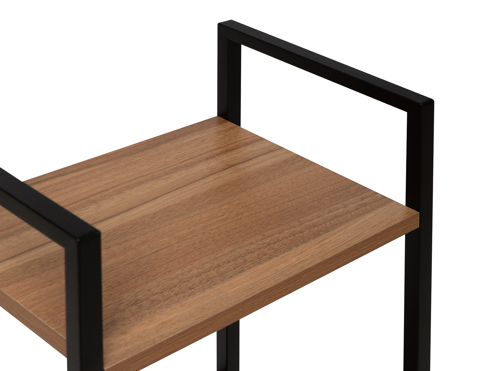 Сочетание теплого древесного оттенка и металлических элементов смотрится стильно и в то же время уютно. Крестовина жесткости обеспечивает устойчивость конструкции. Регулируемые опоры компенсируют неровности напольного покрытия.