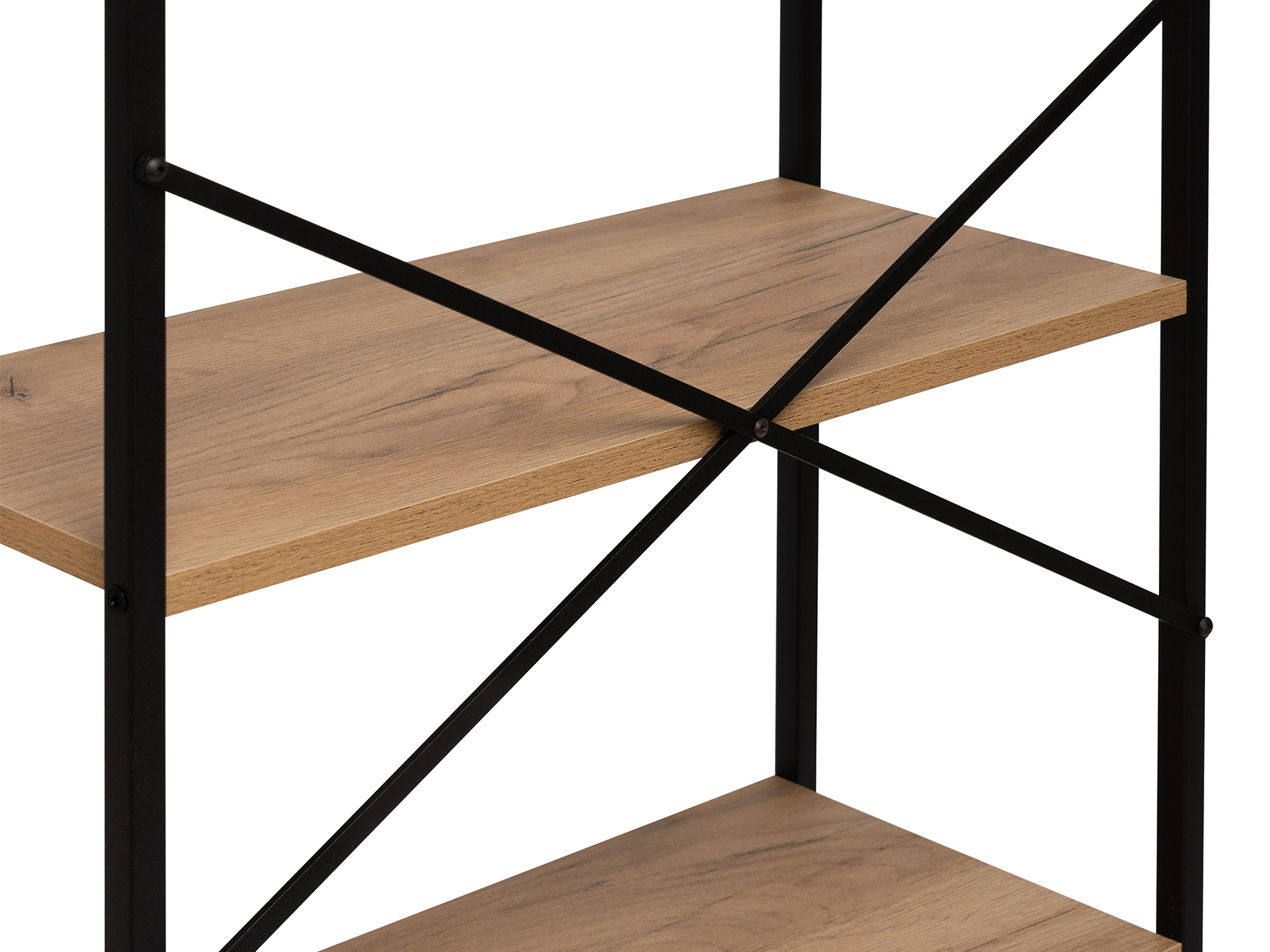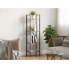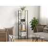 Модель с необычным геометрическим дизайном будет полезным предметом меблировки в гостиной, спальне или рабочей зоне. Открытые полки позволяют хранить книги, статуэтки и декор. Прочная металлическая конструкция устойчива и безопасна в эксплуатации.